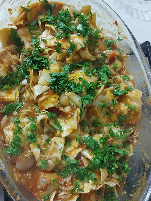Marié à une sauce tomate à la viande savoureuse et une béchamel onctueuse, ce gratin généreux devient un repas familial réconfortant et gourmand. Une idée pratique, facile et parfaite pour régaler tout le monde autour de la table.