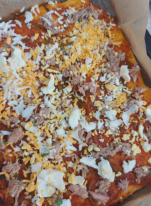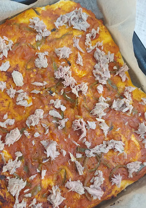 La pizza au thon maison est une recette simple, généreuse et idéale pour un repas convivial. Préparée avec une pâte moelleuse, une sauce tomate parfumée aux herbes, du thon en conserve et du fromage fondant, elle séduit par son goût équilibré et sa facilité de réalisation.