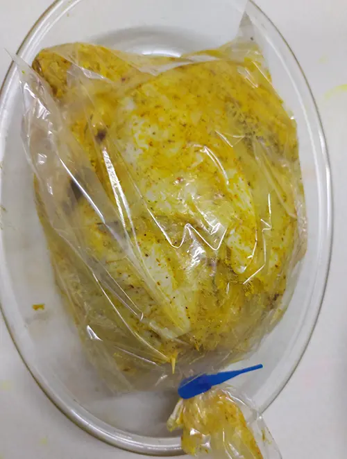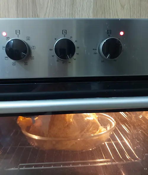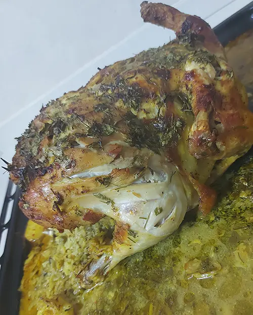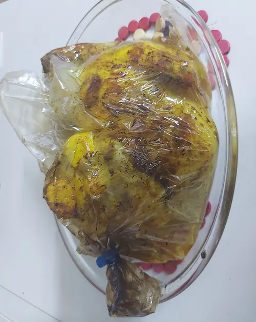 Cuit lentement au four dans un sac de cuisson, le poulet reste bien juteux et développe des saveurs harmonieuses, idéales pour un repas familial ou une occasion spéciale.