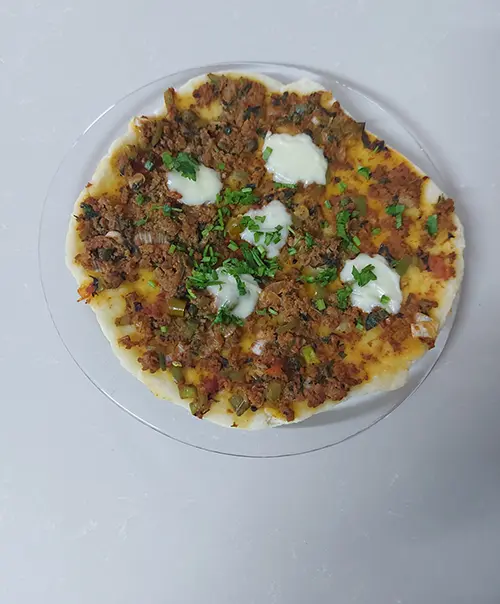 Savoureuse et conviviale, cette tarte à la viande hachée, façon pizza, allie une pâte moelleuse cuite à la poêle, puis légèrement gratinée au four, à une garniture parfumée. Facile à préparer, elle marie base maison, sauce à la viande riche en arômes et touche de fromage fondant pour un résultat irrésistible.