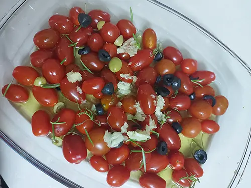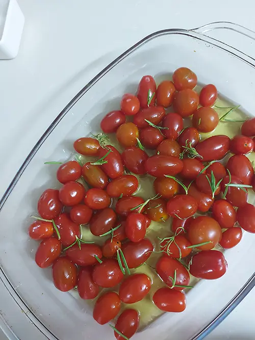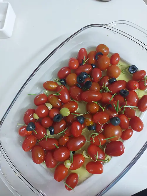 Cette recette simple et élégante met à l’honneur la tomate cerise dans toute sa douceur. Lentement confites au four avec de l’huile d’olive, de l’ail, des herbes fraîches et quelques olives, elles révèlent une intensité aromatique incomparable.